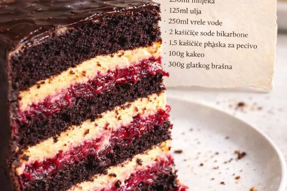 Sočna torta sa kakaovim biskvitom, voćnim filom i laganom vanil kremom – savršena za rođendane i posebne prilike. 📏 Kalup 2 × 20 cm (za 4 kore)ILI 1 × 24 cm (za 3 kore) 🟤…