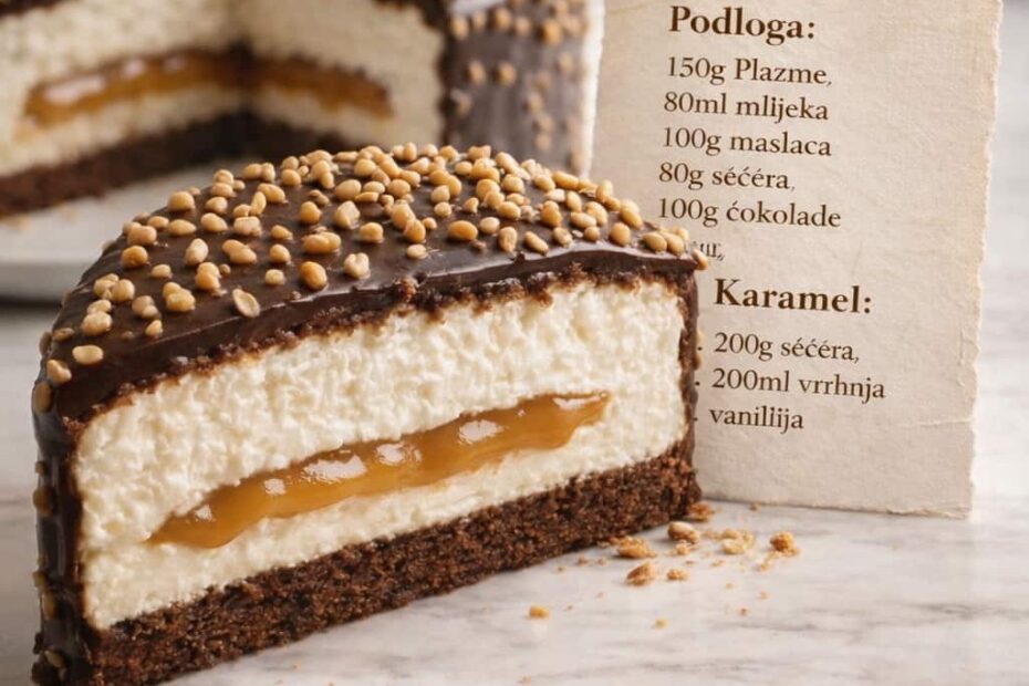 Savršen desert za ljubitelje čokolade i karamela – hrskava podloga, bogati karamel i čokoladni ganache koji se topi u ustima. 🧁 Sastojci Podloga 150 g mljevene Plazme 80 ml mlijeka 100 g maslaca ili margarina…