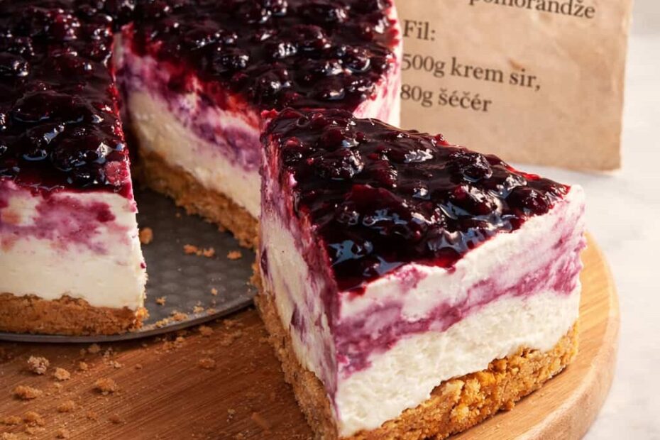Savršena kombinacija kiselkastog limuna i slatkih borovnica u kremastom cheesecakeu – lagan, osvježavajući i idealan za svaku priliku. 📝 Sastojci Kora 350 g mljevenog keksa 2 vanilin šećera 120 g putera (otopljenog) 120 ml soka…