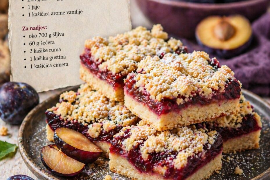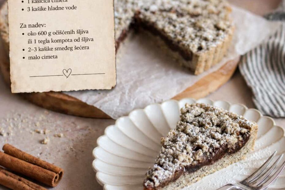 Sastojci Tijesto: 250 g glatkog brašna 1 prašak za pecivo 100 g šećera 1 vanilin šećer 120 g maslaca (sobne temperature) 1 jaje Nadjev: 500 ml mlijeka 2 pudinga od vanilije 200 g šećera 800…