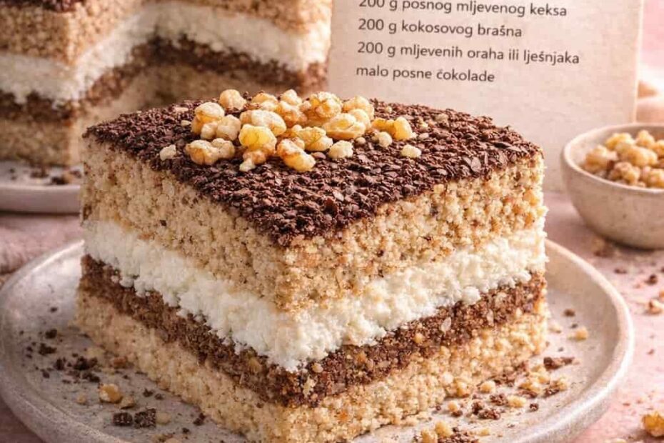 sastojci 1,5 l vode ili biljnog mlijeka 6 kesica posnog pudinga od vanilije 15 kašika šećera 250 g posnog margarina 100 g šećera u prahu 200 g posnog mljevenog keksa 200 g kokosovog brašna 200…