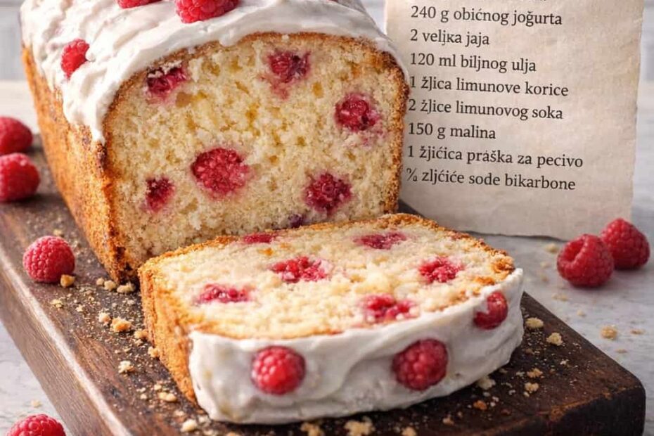 Sastojci: 250 g višenamjenskog brašna 200 g kristal šećera 240 g običnog jogurta 2 velika jaja 120 ml biljnog ulja 1 kašika limunove korice 2 kašike limunovog soka 150 g malina 1 kašičica praška za…