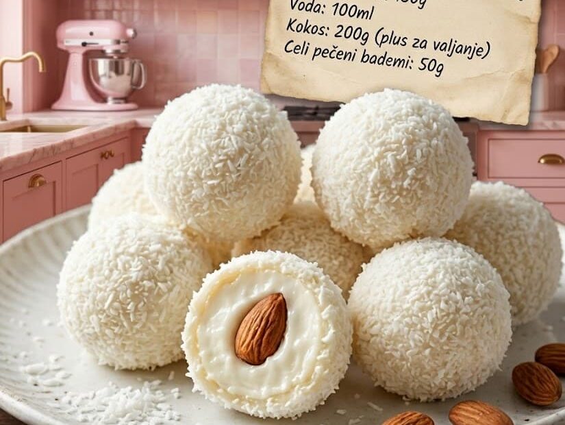 Ako voliš kokos i one poznate Rafaelo bombone — ovaj domaći recept će te oduševiti! Kremaste iznutra, s hrskavim bademom u sredini i laganim kokos omotačem… savršene za svaku priliku. 🤍 Sastojci: 200 g mlijeka…