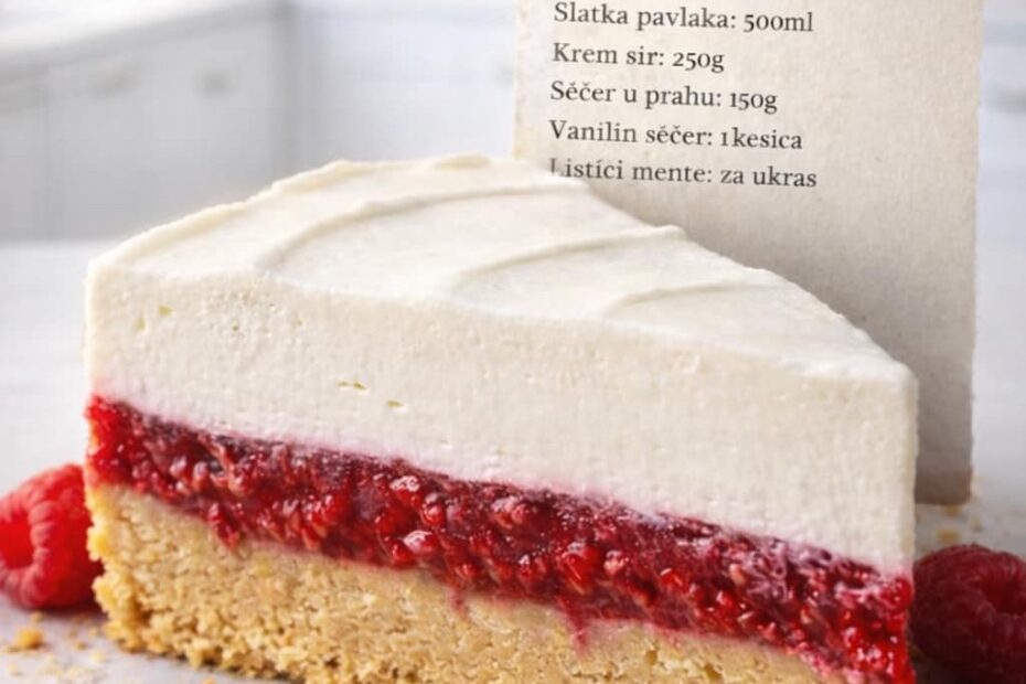 Sastojci: 300 g mljevenog Plazma keksa 150 g otopljenog putera 400 g malina 100 g šećera 2 kašike gustina 500 ml slatke pavlake 250 g krem sira 150 g šećera u prahu 1 kesica vanilin…