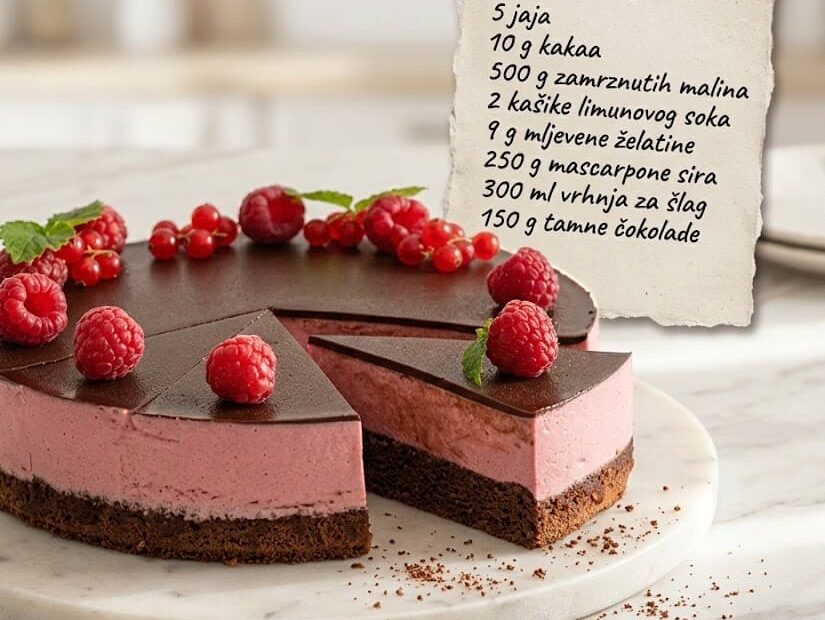 📝 Sastojci: Za biskvit: 4 jaja 120 g šećera 100 ml ulja 100 ml mlijeka 150 g brašna 1 prašak za pecivo Za voćni sloj: 300 g malina (svježe ili zamrznute) 3–4 kašike šećera 1…
