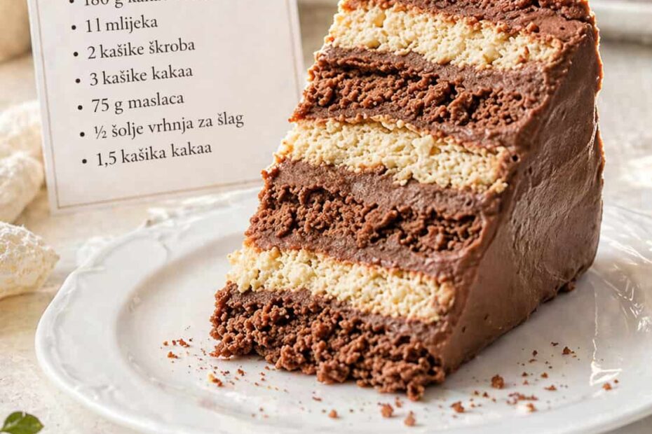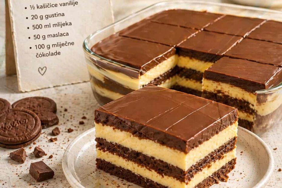 Pravi domaći klasik sa slojevima čokolade, keksa i kreme. Savršen je za goste, slavlja ili kad vam se jede nešto baš posebno i neodoljivo! 📝 Sastojci: Za koru: 4 jaja 4 kašike šećera 2 kašike…