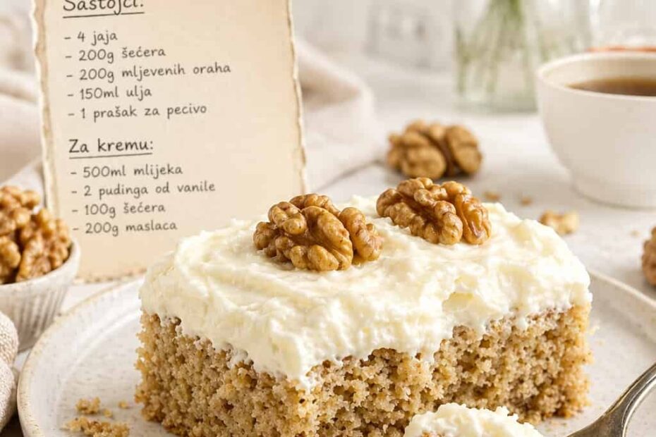 📝 Sastojci: Za kore: 10 bjelanaca 300 g šećera 300 g mljevenih oraha 2 kašike brašna Za fil: 10 žumanaca 150 g šećera u prahu 100 g tamne čokolade 250 g putera 👩🍳 Priprema: 1.…