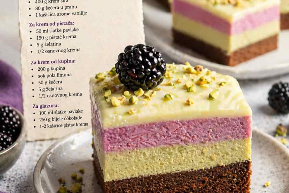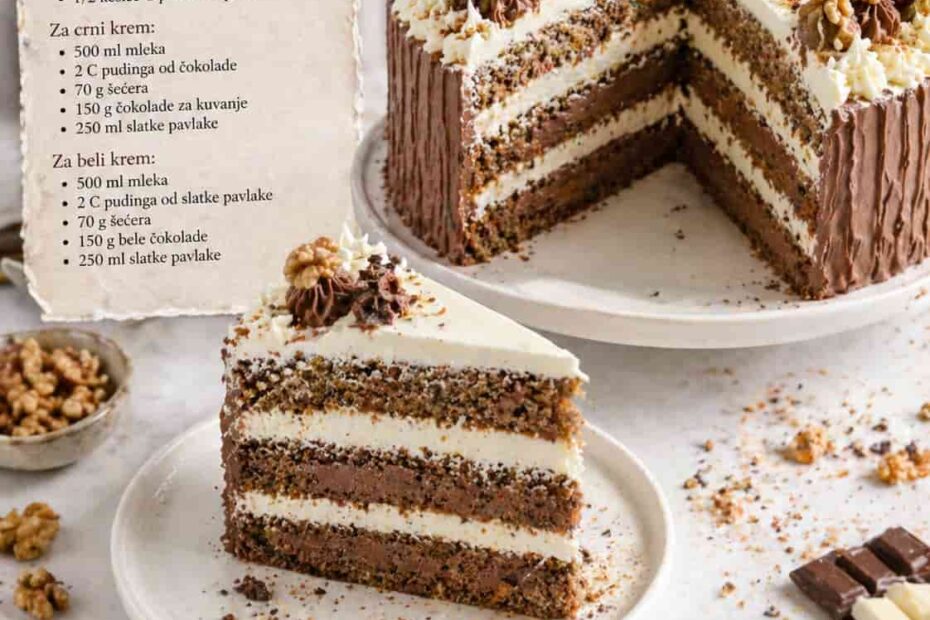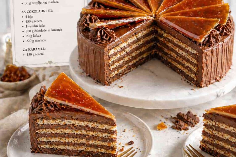 Opis Ovaj kolač inspirisan je tradicionalnim tufahijama i kombinuje jabuke, orahe i kremu od vanilije u slojevitom obliku. Sastojci Za sloj jabuka: jabuke Za biskvit: jaja šećer brašno prašak za pecivo Za sloj od oraha:…