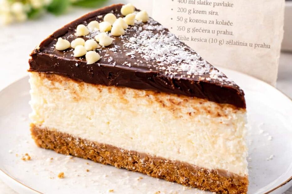 📝 Sastojci Podloga 200 g mljevenog keksa 50 g otopljene čokolade za kuvanje 5 kašika mlijeka 80 g otopljenog putera Krema 400 ml slatke pavlake 200 g krem sira 50 g kokosa za kolače…