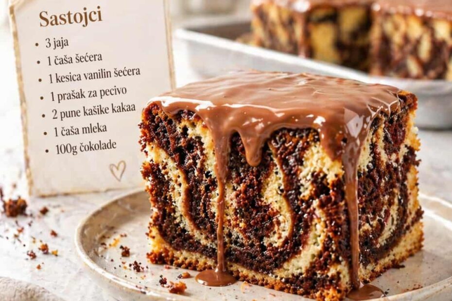 📝 Sastojci: Mjera: 1 čaša = 200 ml Za biskvit: 3 jaja 1 čaša šećera 1 vanilin šećer 1 čaša mlijeka 1 čaša ulja 2 i po čaše brašna 1 prašak za pecivo prstohvat soli…