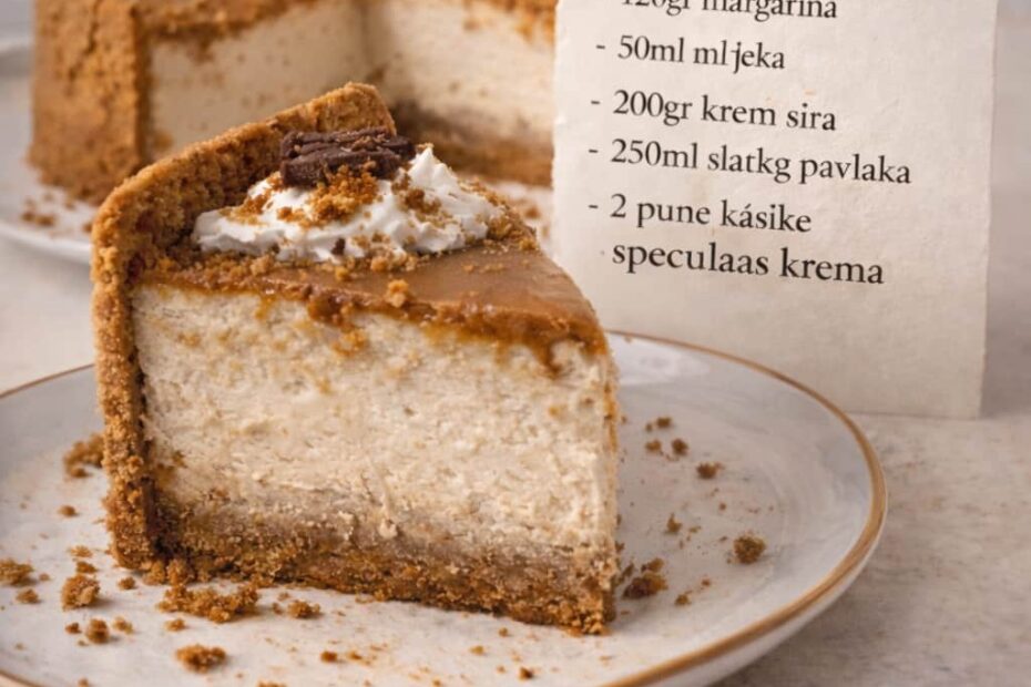 Potrebni sastojci: – 300gr mlevenog Lotus keksa – 120gr margarina – 50ml mleka – 200gr krem sira – 250ml slatke pavlake – 2 pune kasike speculaas krema – Još dve kašike krema za glazuru –…